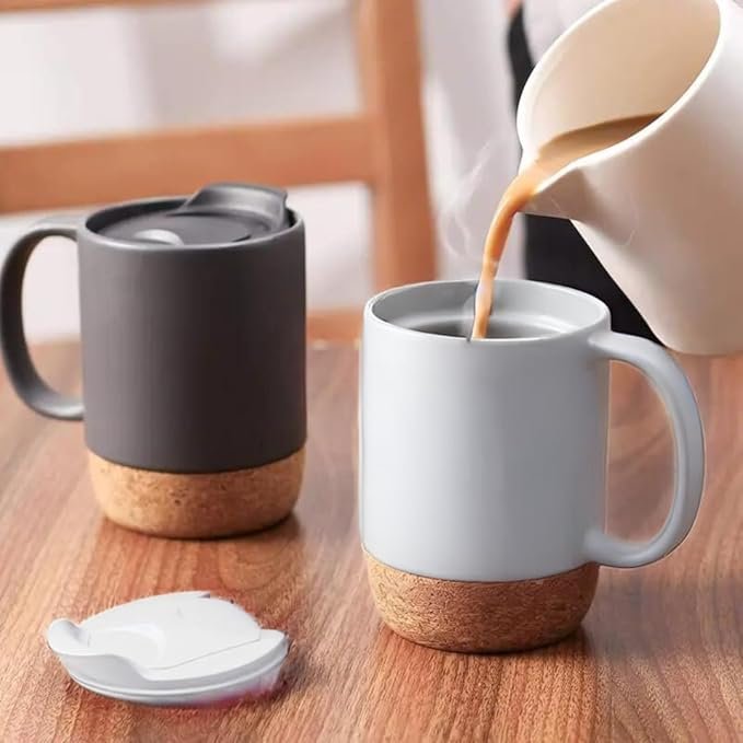 • Built-in Cork Bottom: The mug’s cork bottom not only insulates heat but also prevents scratching and staining on table tops or countertops.